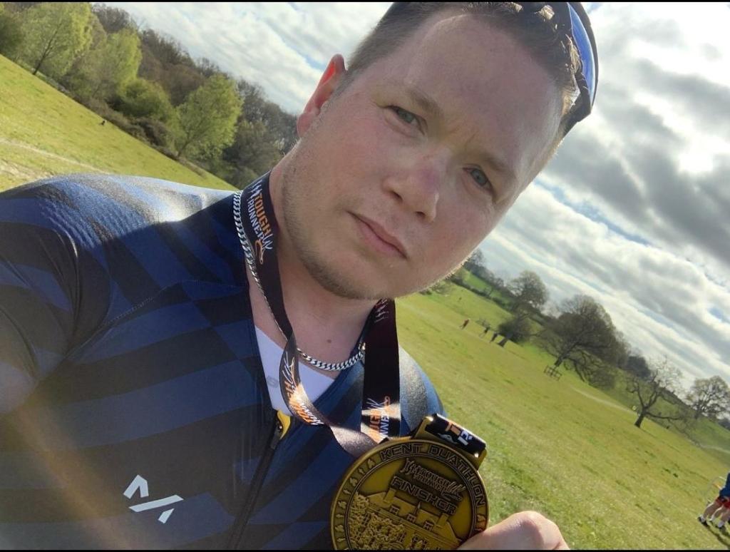 It was Dan’s first multi-sport event and he chose the sprint option with a 5km run bike ride and final 2.5km run. As he stood on the start line it clouded over and suddenly the temperature dropped and the nerves kicked in. He steadied himself and before he knew it he was sprinting along his first 5km off road trail run.