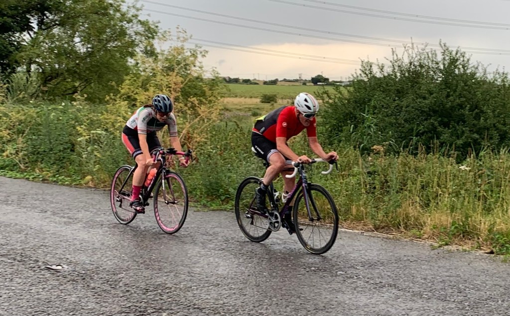 First up on Friday evening was the clubs 2 up time trial championship. Run off in a light drizzle experience racers Jon Graciano and Mike Stanley who recorded a time of 26:44, a mixed pairing of Rob Kennison and Sally Smith took second place with 27:08, with Nigel Wharton and Fraser Blandford hot on their heels with 27:14.